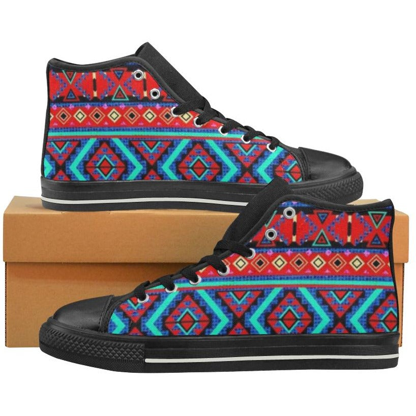 Bright Aztec Print Inspired Women's Classic High Top Canvas Sneakers